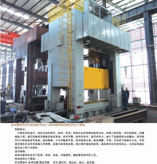 公司能夠為市場提供42大類500余個品種的標準液壓機和非標專用、精密伺服液壓機。產品廣泛應用于汽車、航天、粉末冶金、船舶、輕工、建筑、電子、家用電器等行業,并代表著我國通用液壓機的發(fā)展水平。公司生產、設計、開發(fā)的液壓機產品完全能夠滿足國內不同用戶多層次的需要。